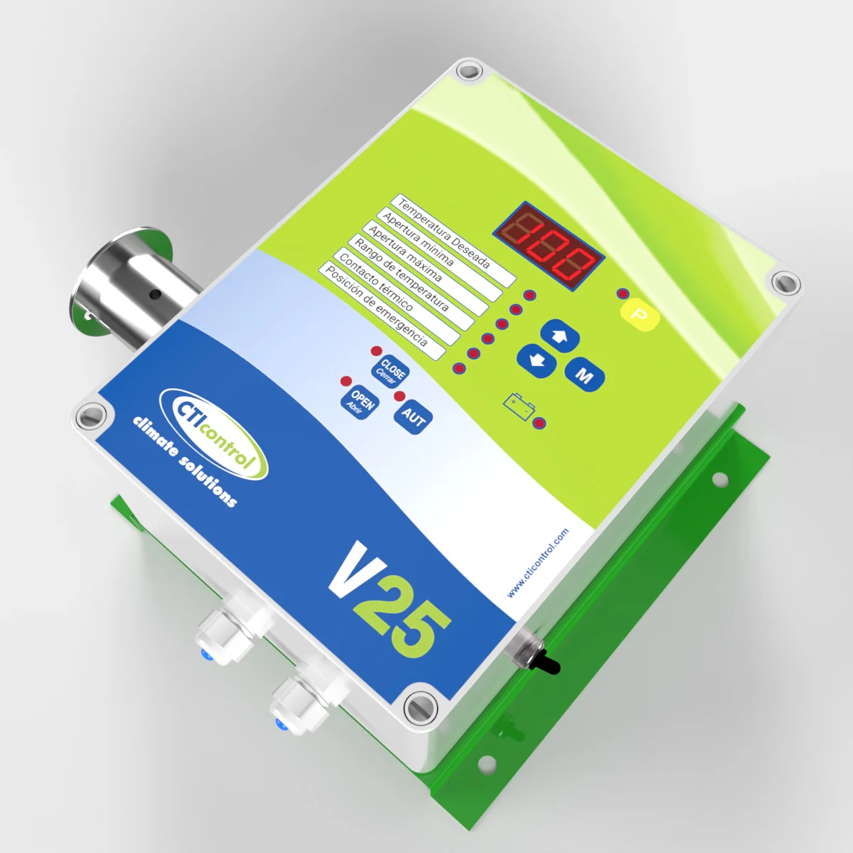 Controlador climático avanzado que permite gestionar de forma independiente la apertura de ventanas y el control de ventiladores, optimizando el ambiente en explotaciones ganaderas.