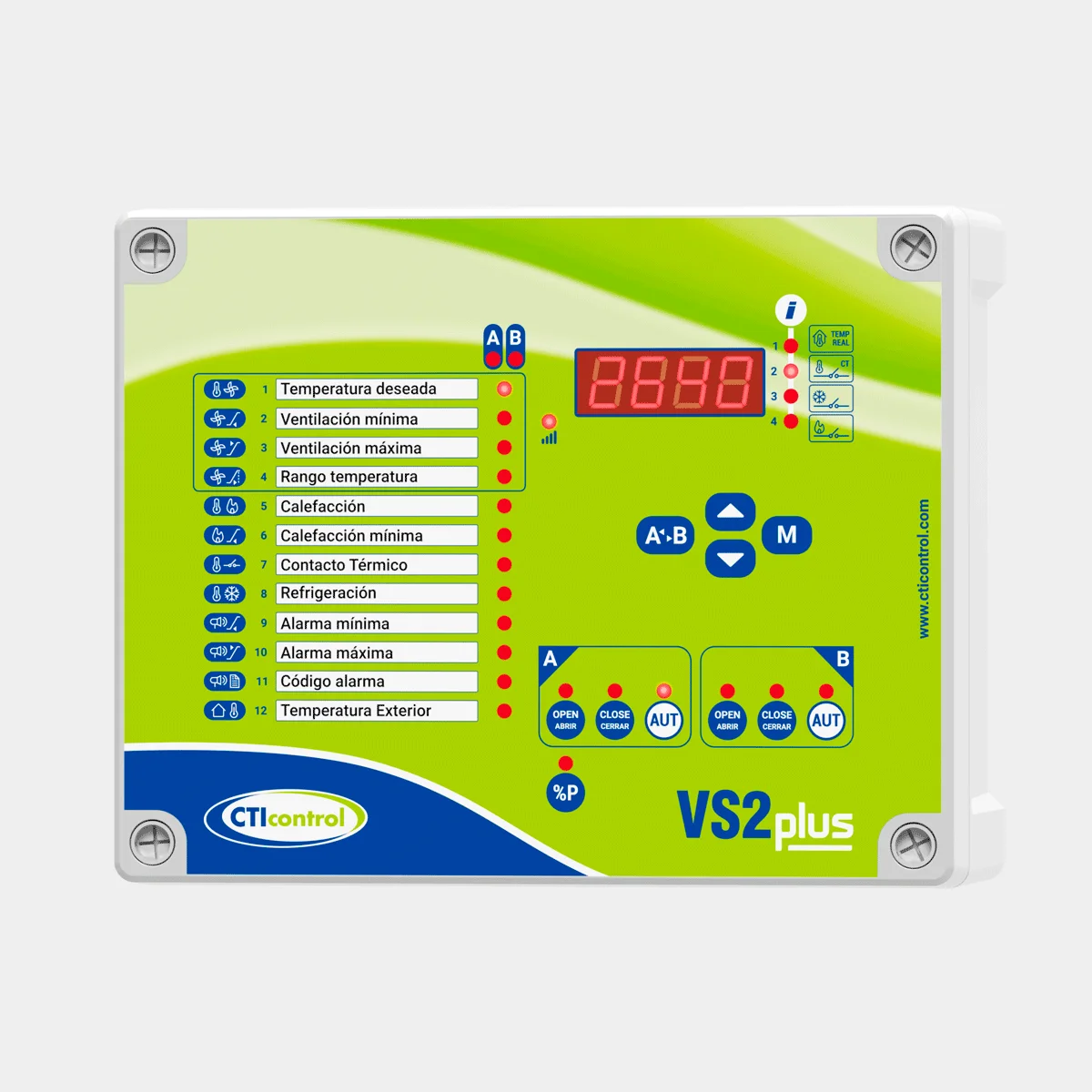 Controlador climático avanzado con gestión completa de ventilación, calefacción, refrigeración, alarma, temporizador y entradas de aire. Control independiente de motorreductores monofásicos, trifásicos (hasta 1/2 CV) y motores DC. Control mediante potenciómetro, tiempo y encoder.